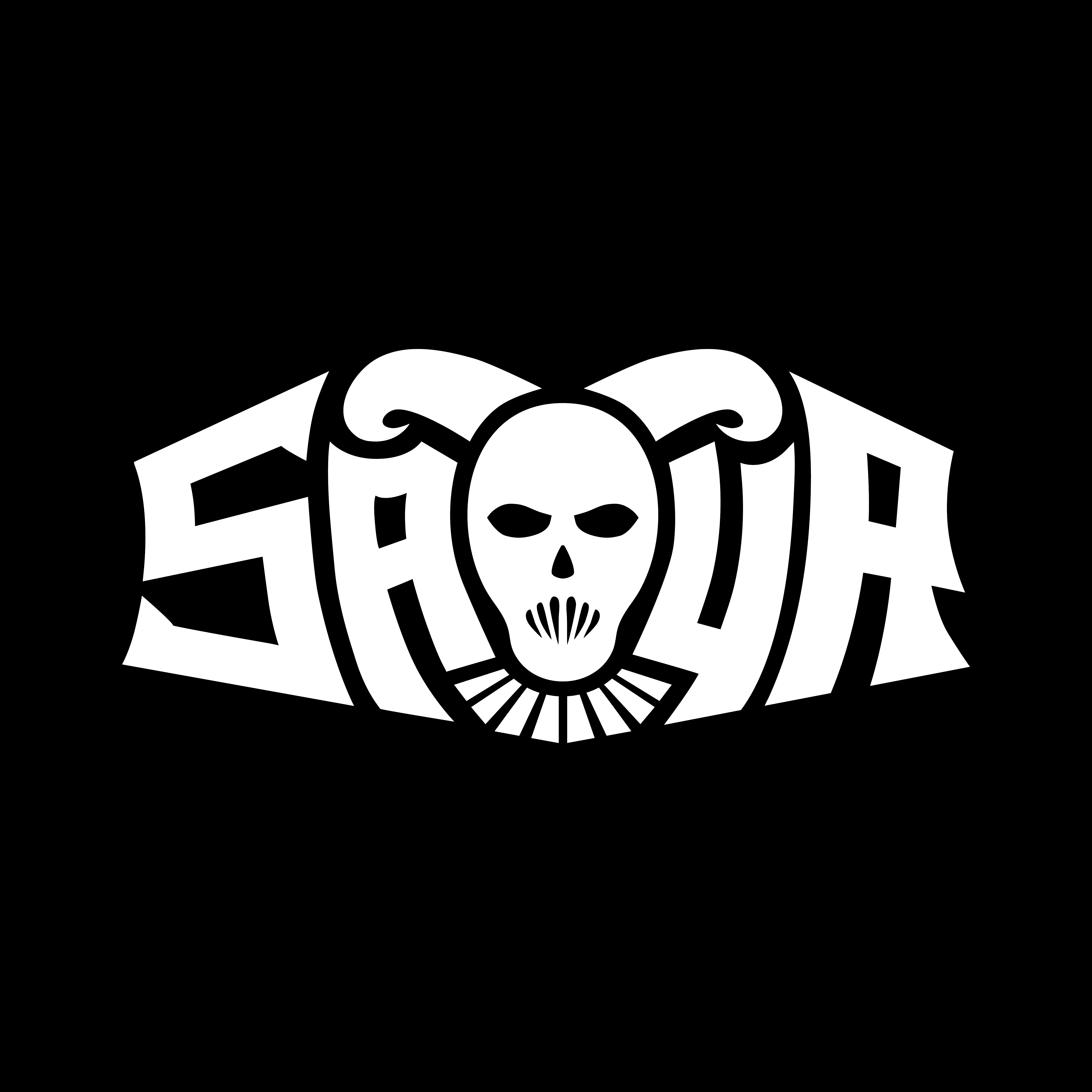 This logo for DJ Satyr replaces the ‘T’ with his signature mask, symbolizing his distinctive identity and powerful presence within the hard techno scene.