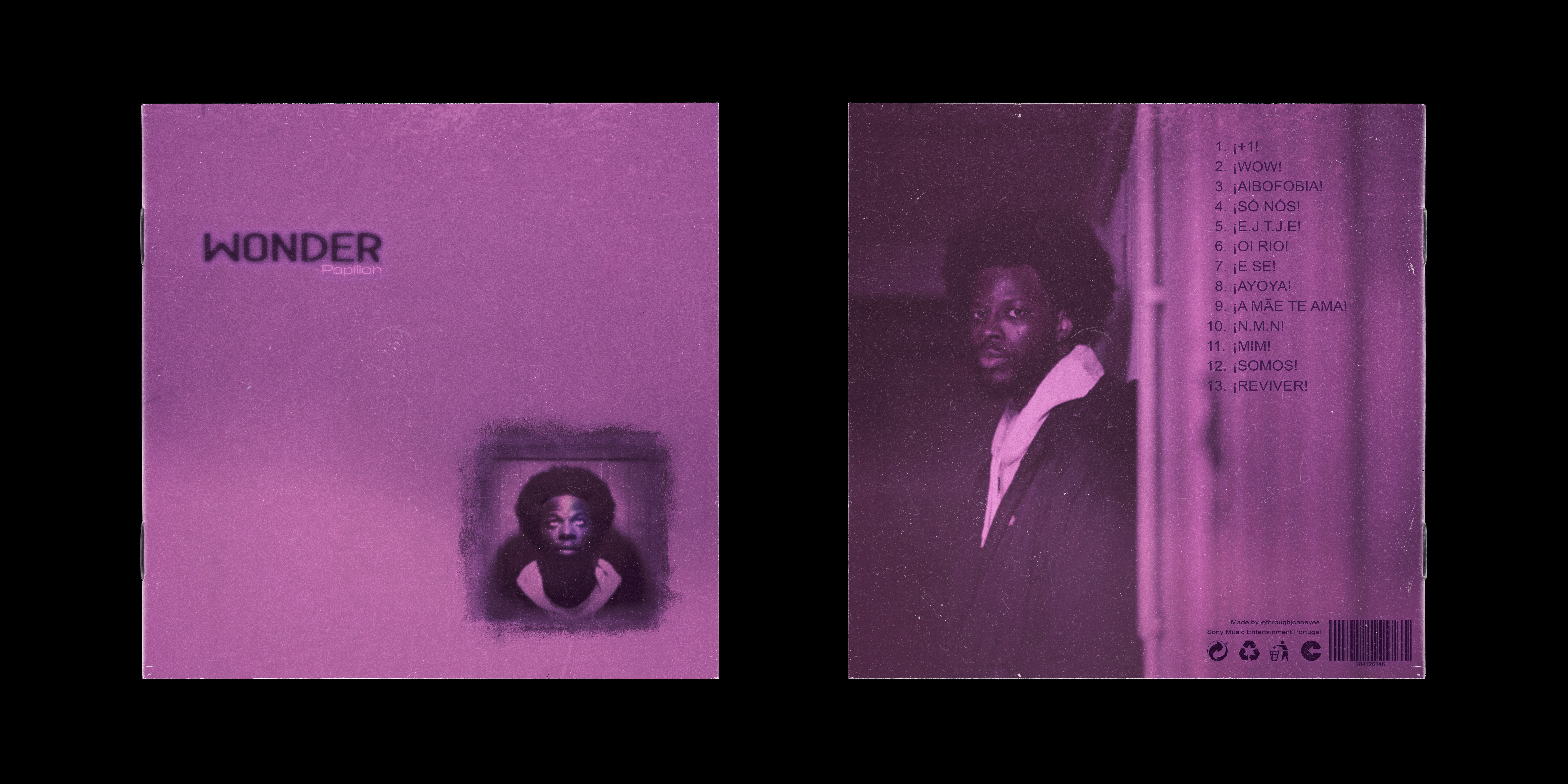 This design was a personal concept inspired by Papillon’s latest album release - WONDER. I connected deeply with the album and felt the need to translate that emotion into a visual piece. The design explores introspection, fragility, and identity through a minimal, textured aesthetic, using muted tones and raw imagery to reflect the atmosphere of the music. It was a purely creative exercise, driven by admiration for the project and the urge to create something expressive.
