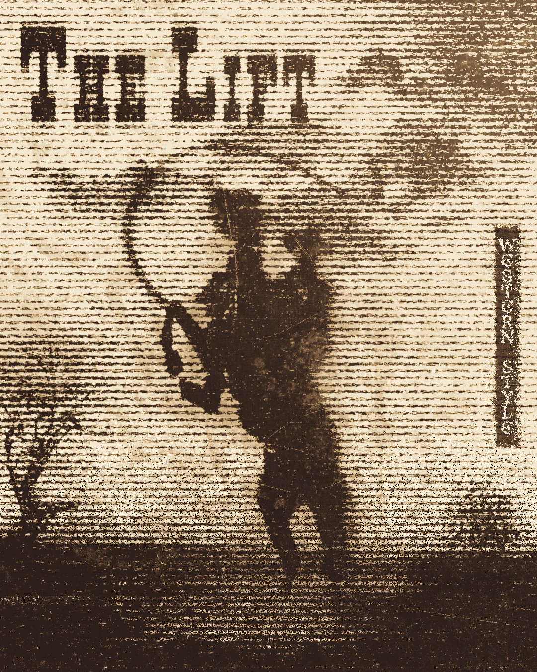 A gritty western piece capturing the tension of a lone rider mid-lift, wrapped in dust, grain, and old-film texture. It channels classic frontier attitude with a raw, vintage feel, turning a simple moment into a bold, cinematic snapshot.