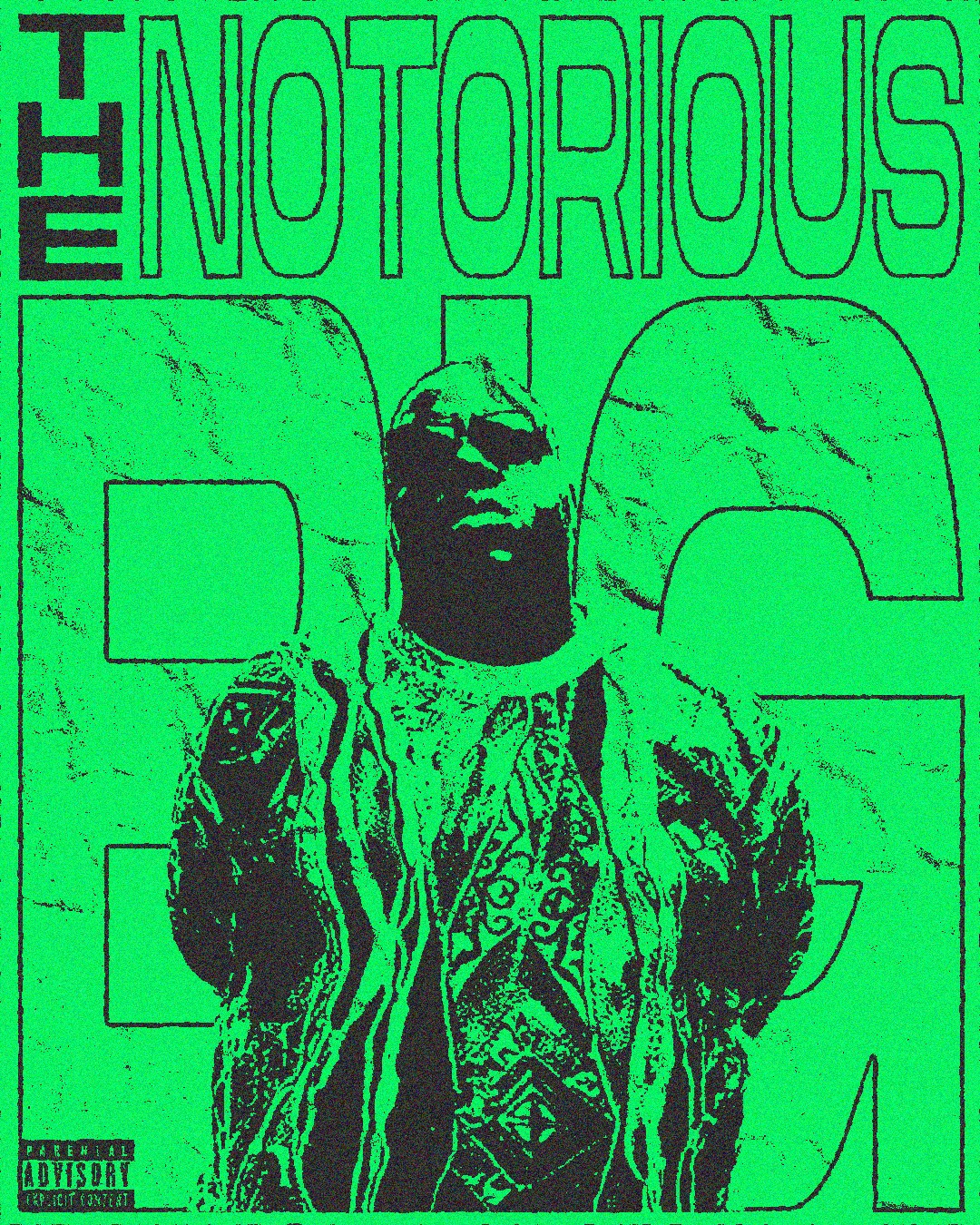 Celebrating one of rap’s legends, this poster transforms B.I.G’s iconic presence into a bold, vintage-inspired visual.