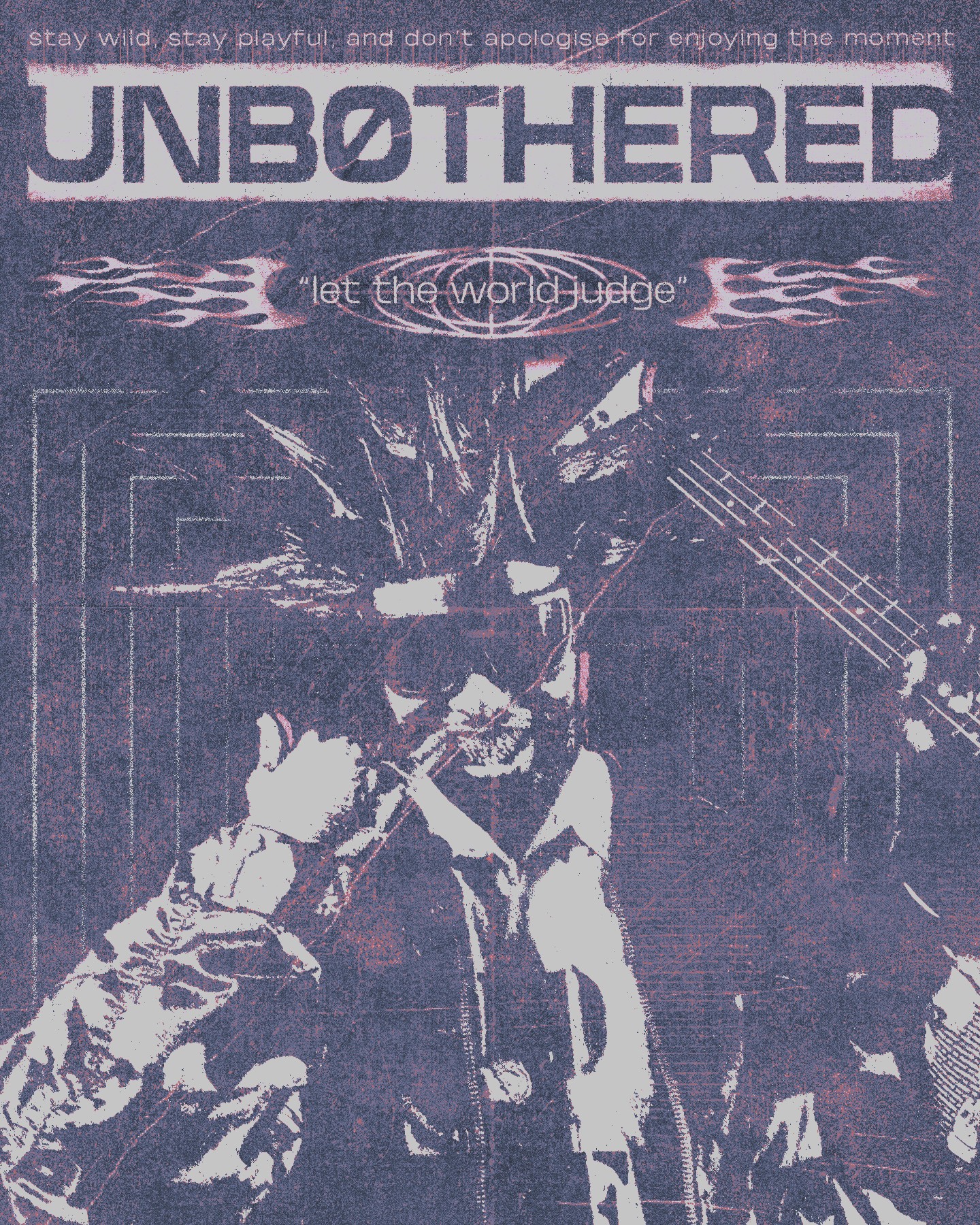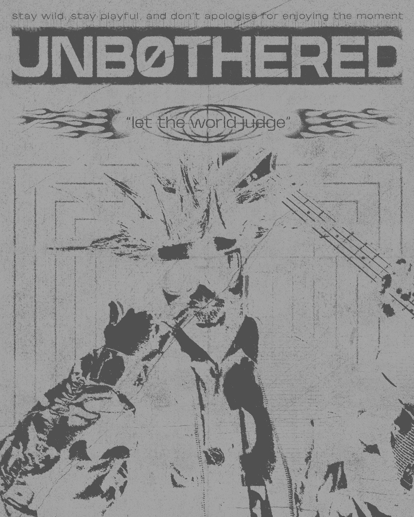UNBOTHERED explores a raw, rebellious mindset — staying playful, expressive, and unapologetic in a world full of judgment. The composition blends chaos, attitude, and self-expression to reflect freedom, individuality, and the choice to live without seeking approval.